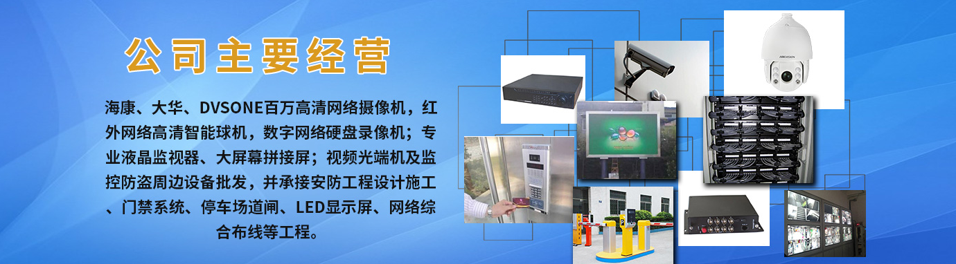 公司涉及安防行业十余年,并专业立足于安防事业的发展。公司是海康、大华签约合作经销商,光纤收发器及监控防盗周边设备批发,并承接安防工程设计施工。